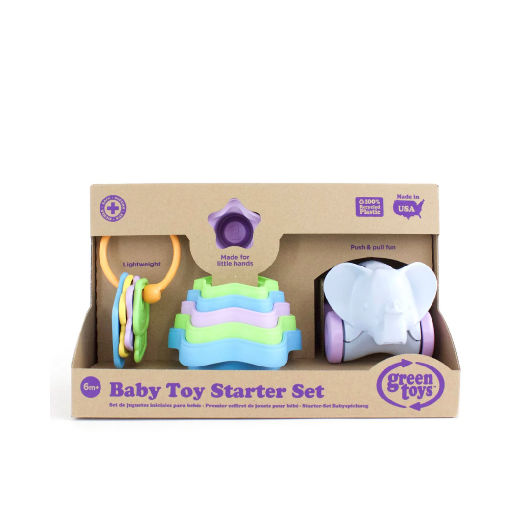 - This set consists of the Green Toys first keys, stacking cups and elephant on wheels.