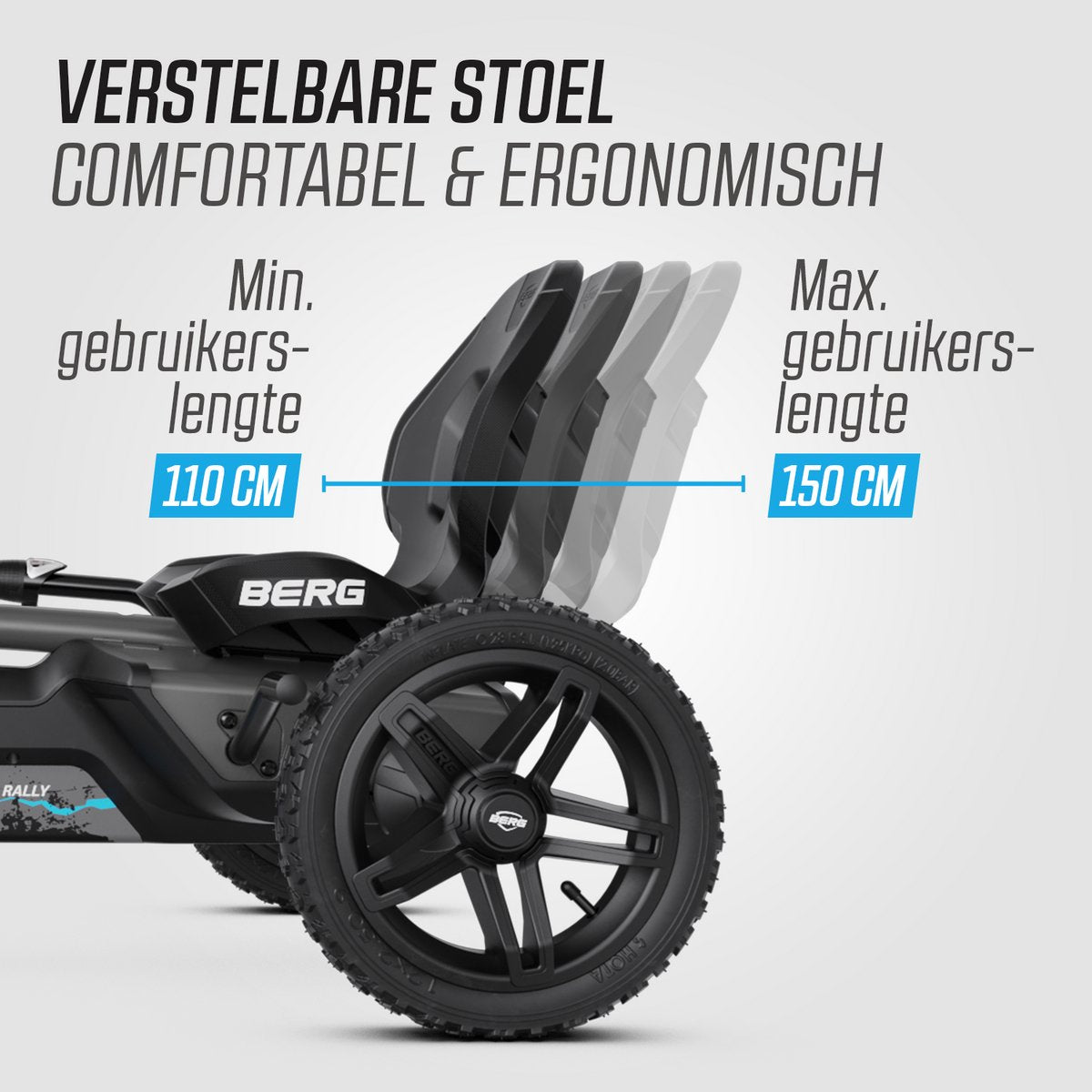 - The Rally DRT Black by Berg is the go-cart that you can use anywhere. A sturdy chassis, for a cool go-cart in tough black.