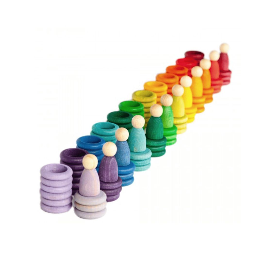 - This large and beautiful set consists of 120 parts , namely: 12 rainbow-colored figures and 3 coins + 6 rings per color.
