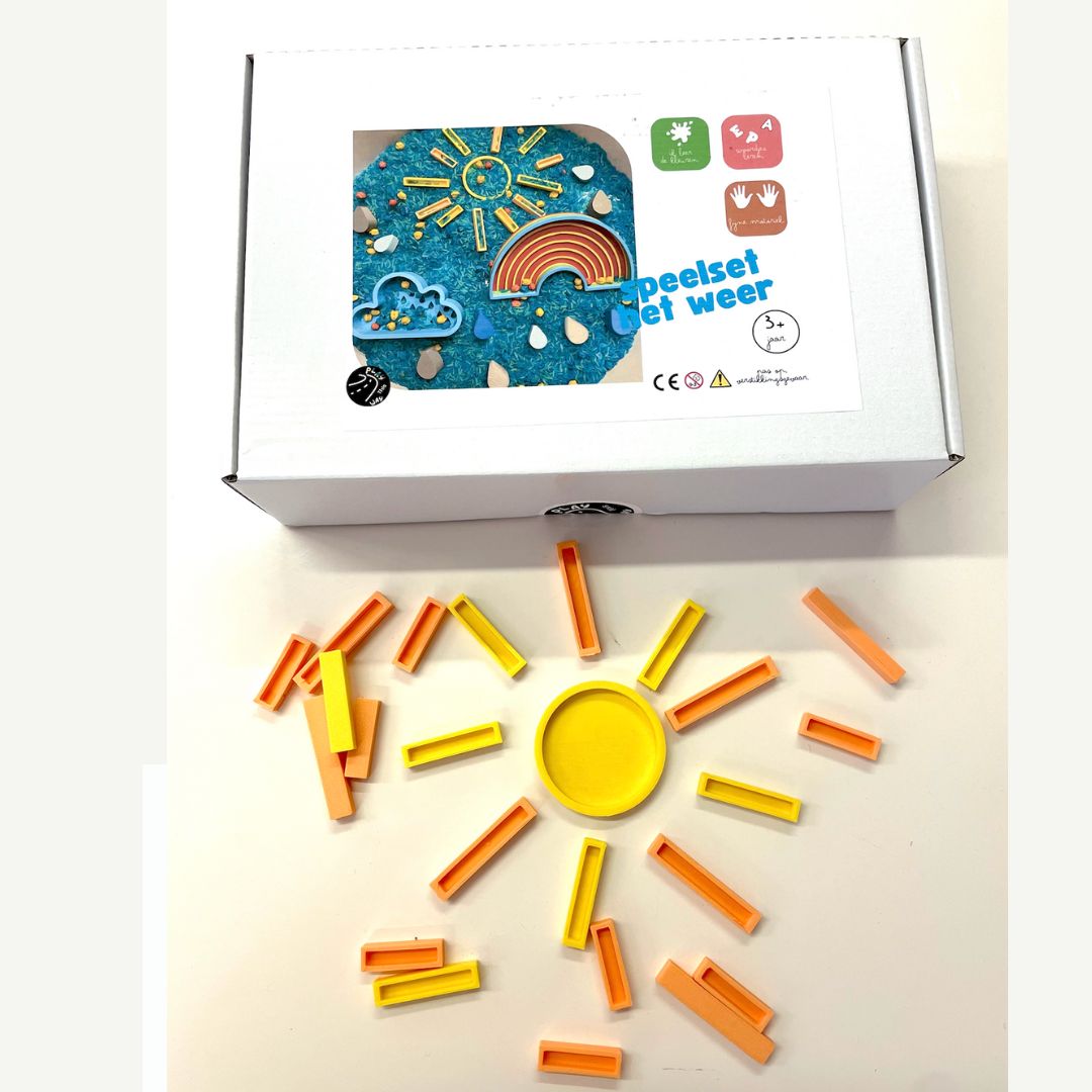 - The box is entirely designed around the theme of rainmaking and contains: a sunbeam mold, a cloud-shaped sieve, a rainbow mold, 12 raindrops, and 500g of rain rice. All tested, CE-certified, and food-safe.