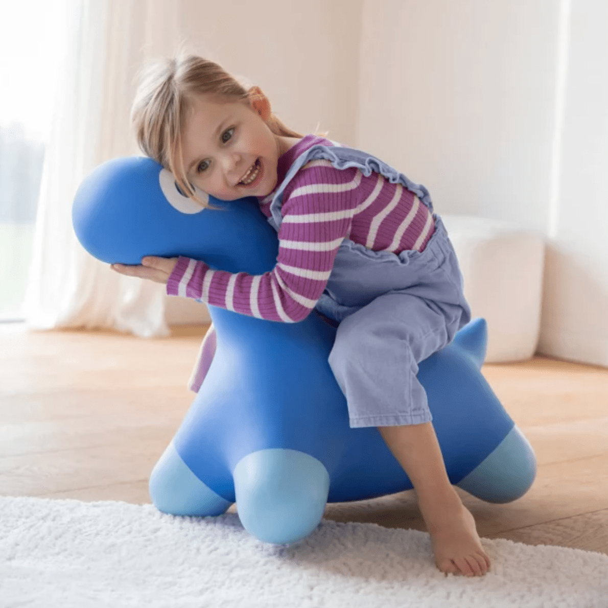 - This fun dino is here to make playtime extra fun and exciting . With its soft and colorful body, it is perfect for little ones to hop around and move around while playing. This jumping buddy also helps improve creativity, balance, coordination and muscle strength.