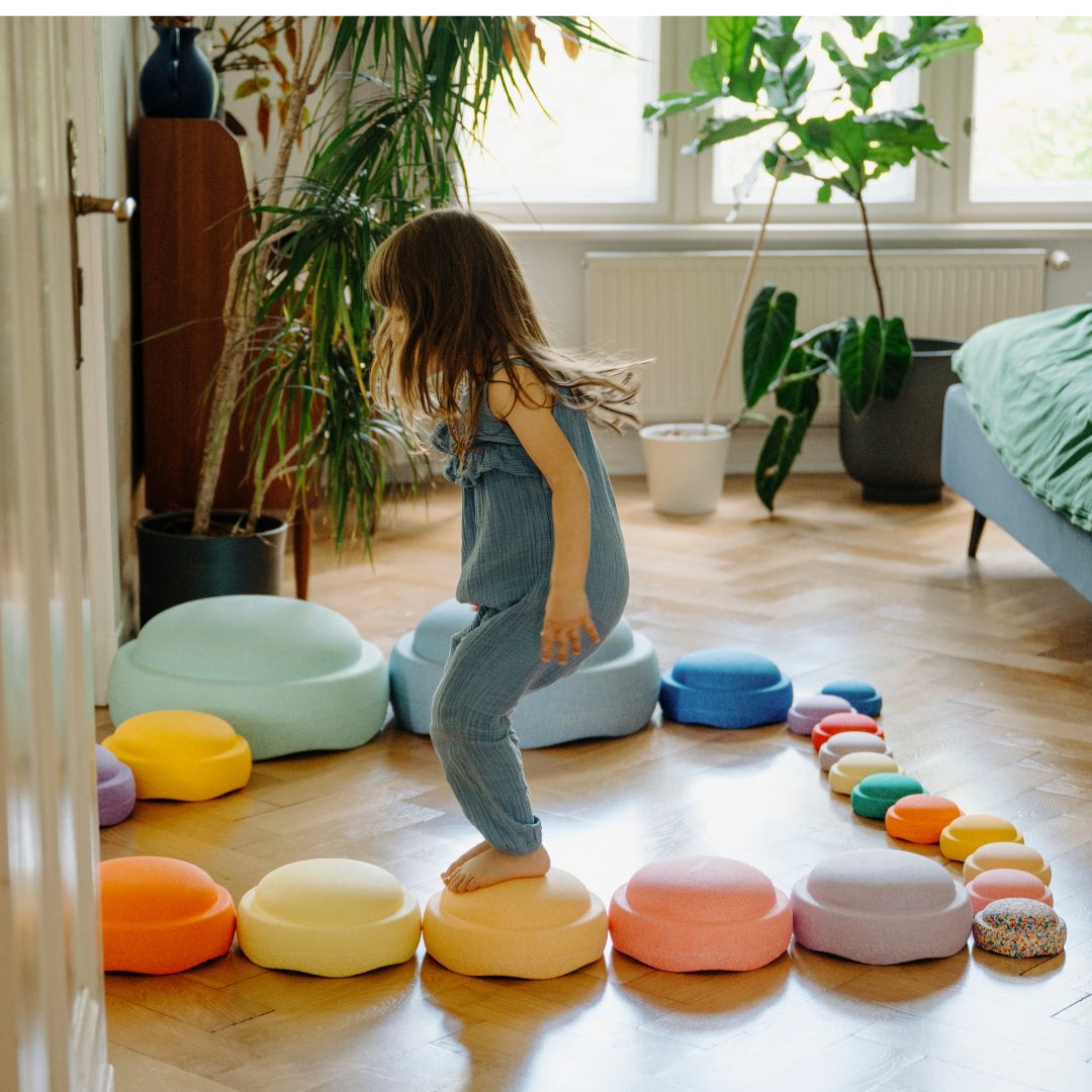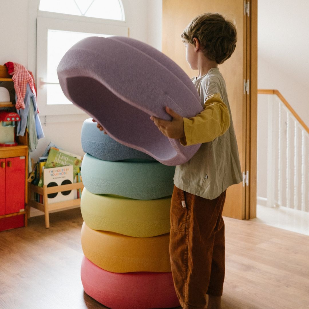 - This giant stacking stone from the German company Stapelstein is designed to get children moving in a variety of ways. You can stand on it, balance on it, but also sit and lie down. You can sit in it, swing in it, and yes: stack it too.