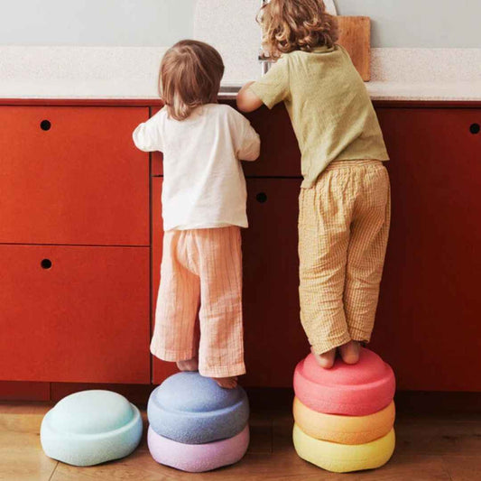 Pierres à empiler Rainbow Pastel 6 + Planche d'équilibre Super Confetti
