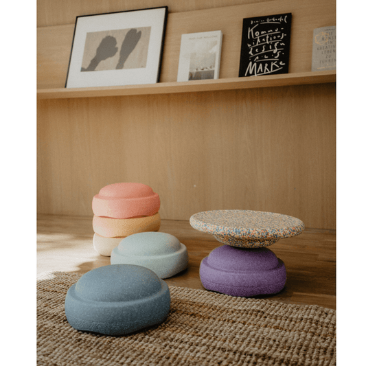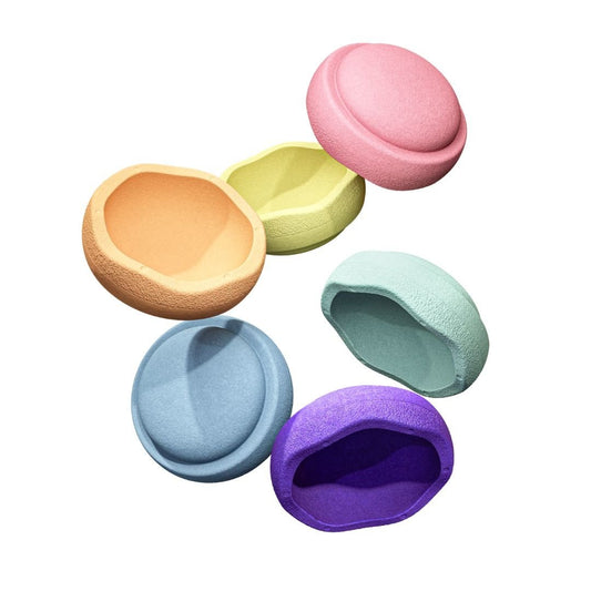 Pierres à empiler Rainbow Pastel 6 + Planche d'équilibre Super Confetti