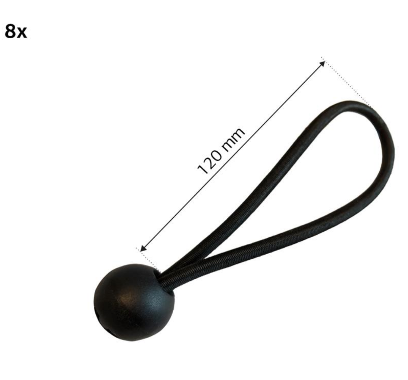 - Lot d' élastiques 120mm avec boule (8 pièces) pour accrocher le filet de sécurité Comfort ou Deluxe d'un trampoline Berg.