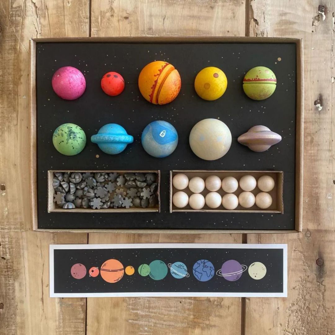 - Ce magnifique ensemble de jeu ouvert de Grapat se compose de plus de 40 pièces en bois que le représentent les planètes et autres corps célestes . Un système solaire à chérir, ou comme son nom l'indique : « Cher Univers ».