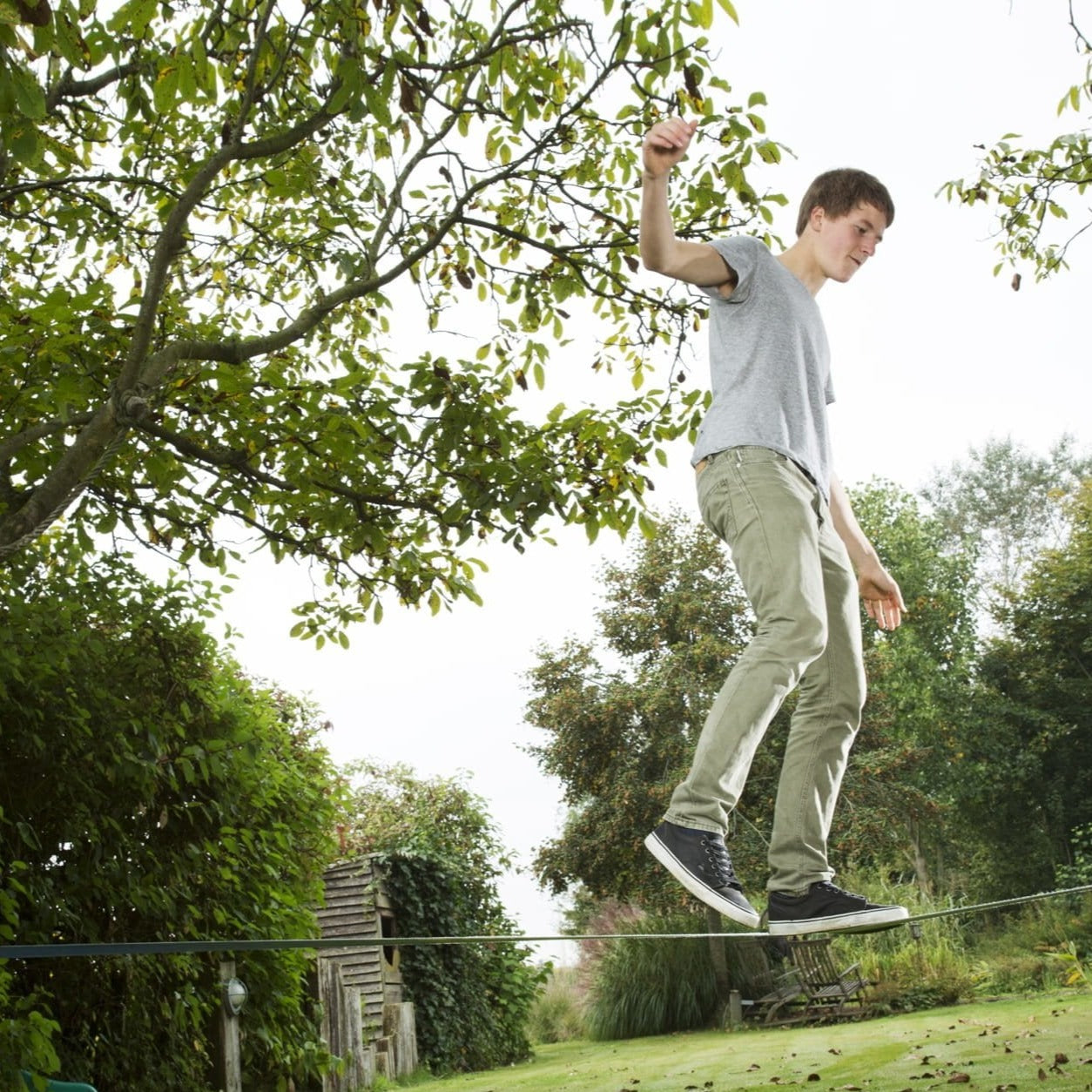 - Cette slackline de Slackstar a été testée par le TüV allemand et est donc extrêmement sûre (même si vous pouvez bien sûr encore tomber au début).