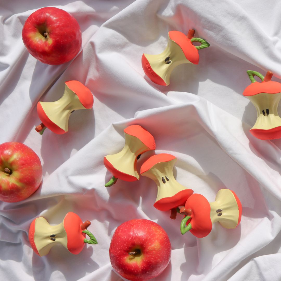 - Het natuurrubberen speeltje is ook ideaal voor in bad! Dit appel klokhuis is zacht en gemakkelijk vast te pakken door kleine babyhandjes.