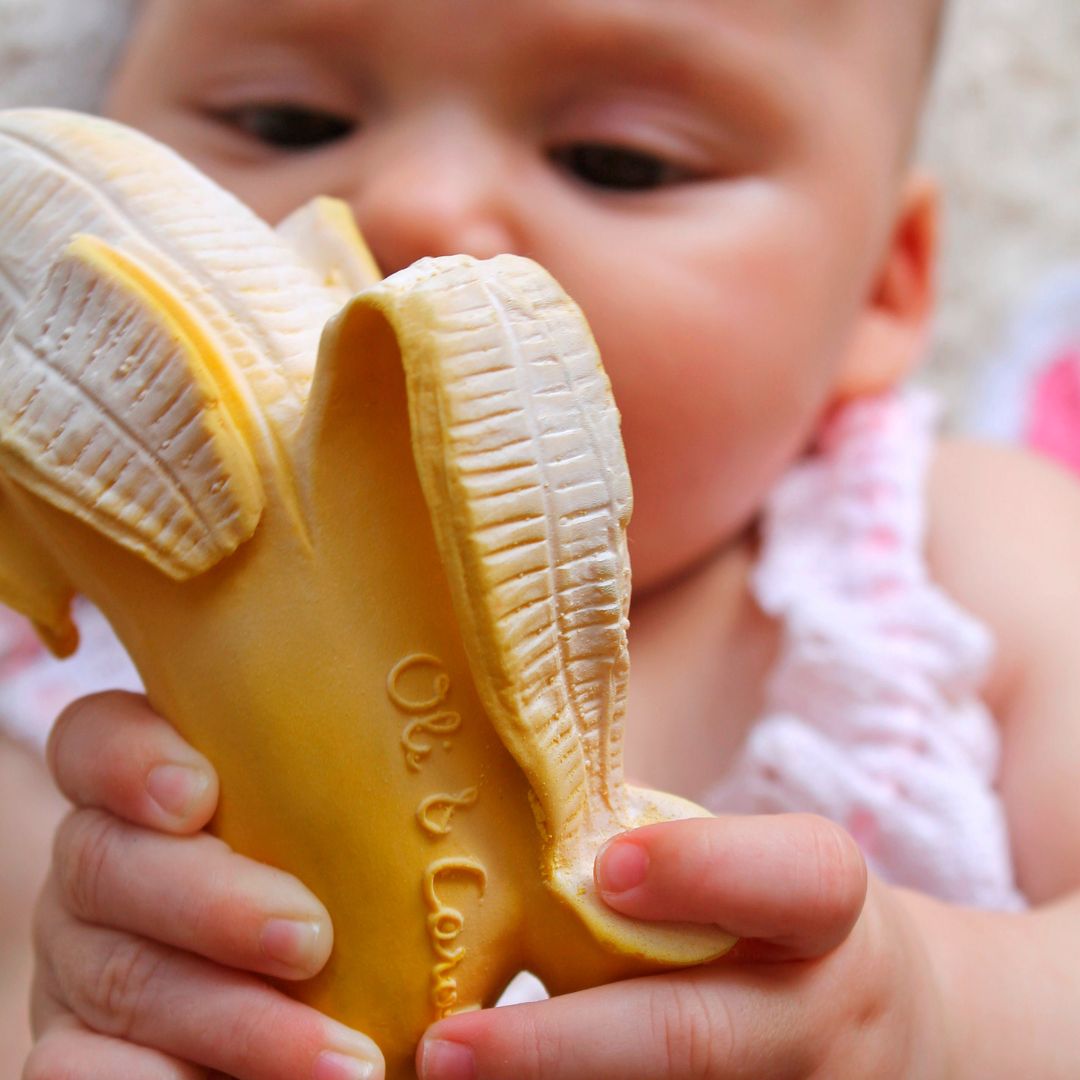 - Ana Banana van het Spaanse merk Oli & Carol is een veilig en verantwoord bijtspeeltje voor je baby. Het natuurrubberen speelgoed is ook ideaal voor in bad! Deze banaan is zacht en gemakkelijk vast te pakken door kleine babyhandjes.