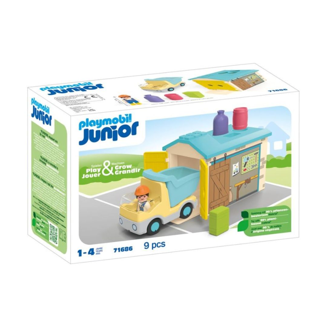- Deze mooie sorteergarage behoort tot de nieuwe Junior-lijn van Playmobil. Dat is een aanbod speciaal ontwikkeld voor de allerkleinsten (vroeger: Playmobil 1-2-3).