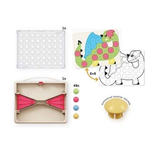 - De set bevat 48 grote steekparels (33mm), 8 basisplaten, een steekbord en een opvangmand.