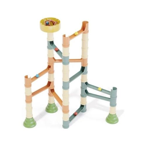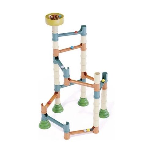- De set bevat 49 onderdelen, waaronder 10 rechte knikkerbanen, 20 kolommen om in de hoogte te bouwen, 12 knikkers, een startplatform, ... .