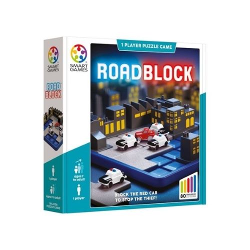 - Roadblock is een gezelschapsspel van SmartGames. In de rode auto zit een dief en je moet de rode auto blokkeren zodat hij niet de stad uit geraakt.