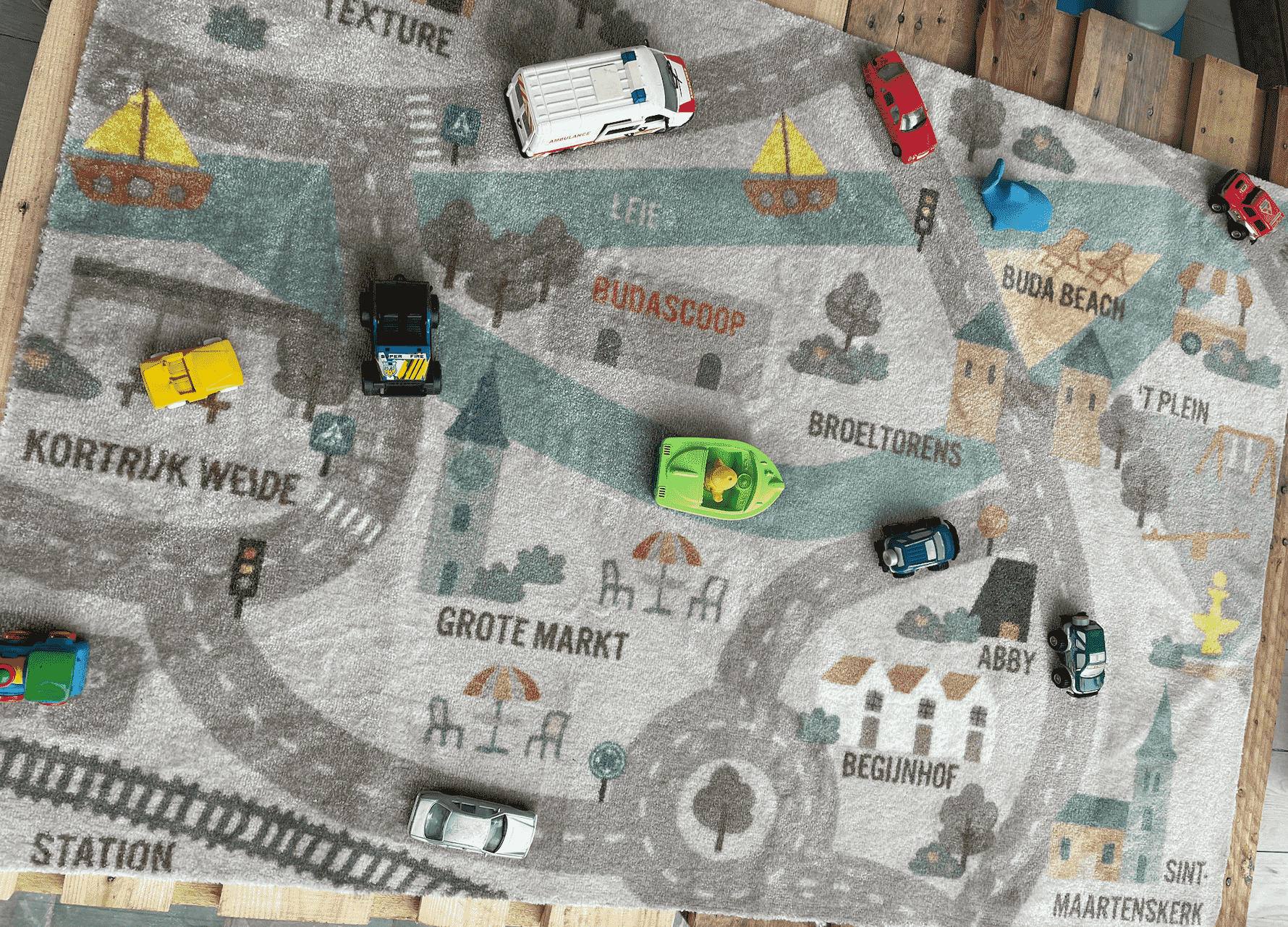 - Met straten en waterwegen (de Leie natuurlijk) om met je autootjes en bootjes op te spelen.