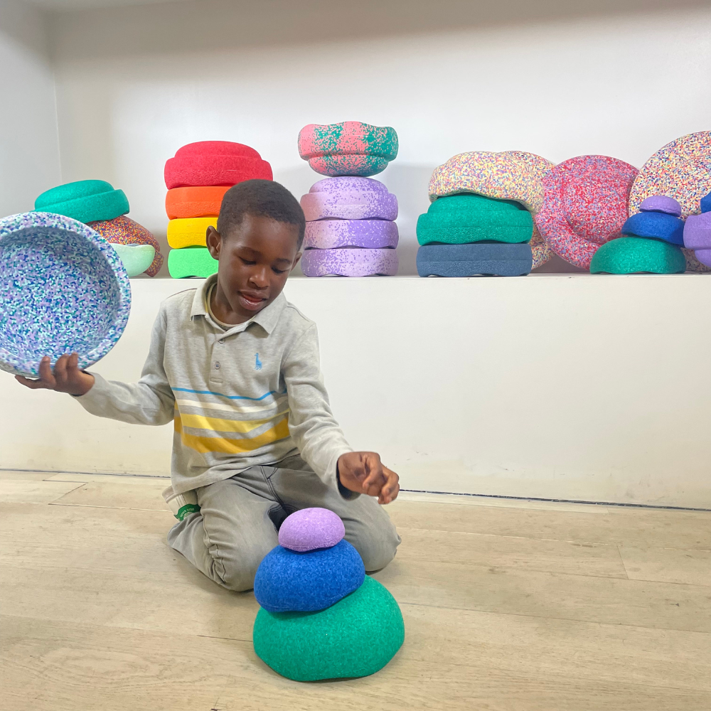 - Je kan met de Stapelsten parcours bouwen, erover stappen, op klauteren, enz.